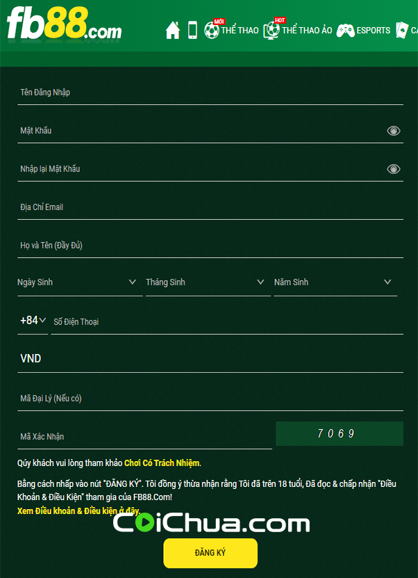 Bước 4: Sau khi đã đọc và tìm hiểu về các điều khoản và điều kiện của fb88, nếu đồng ý hãy nhấn vào ô màu vàng Đăng ký để hoàn tất quá trình là xong.